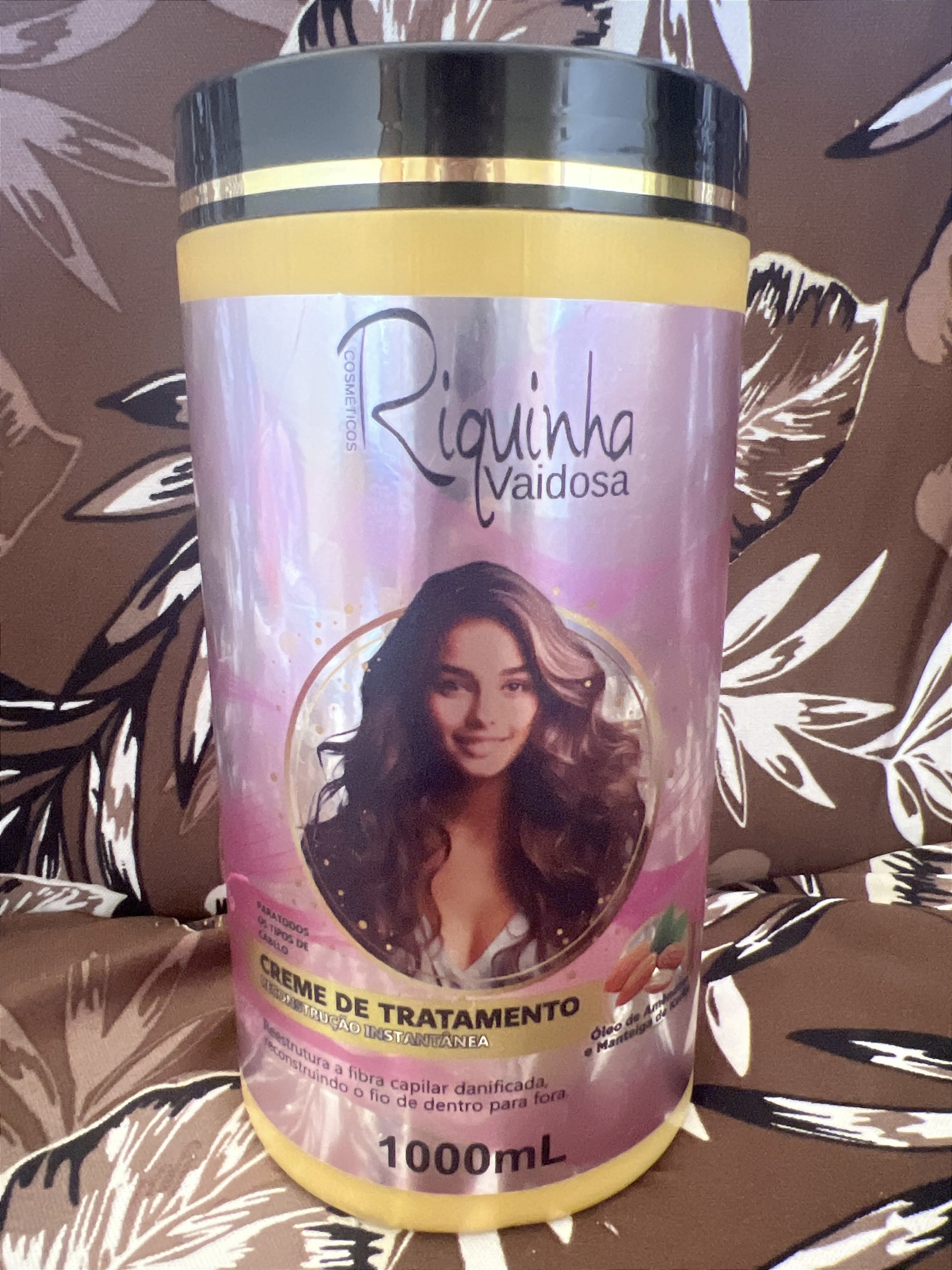 Modo de usar: Após lavar os cabelos, dividire cabelo em 4 partes iguais e aplicar a Creme de Tratamento mecha a mecha, enluvando bem.